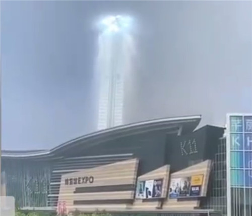 从对比图来看,光柱之所以看起来像天梯,原因是我们看到了一栋大楼的侧面。此外,大楼的右下部分还能隐约看到一些,其余部分都被大雾遮住。如此的巧合,造成了这样的奇观,以致于这个景象看起来有些不真实,像是计算机的特效。